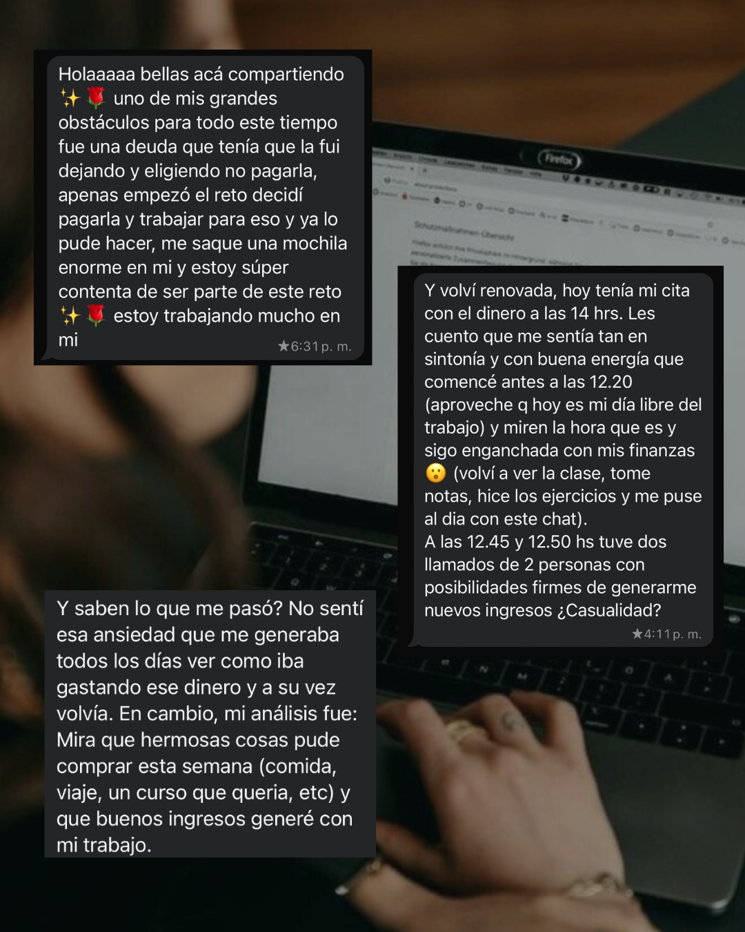 Nada más que tus ganas de transformar tu relación con el dinero, ordenar tus finanzas y empezar a ver cómo se abren nuevas posibilidades en tu vida. El compromiso lo ponés vos, la guía la tenés en este reto.